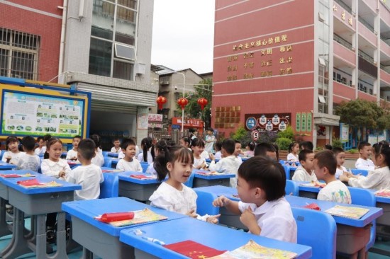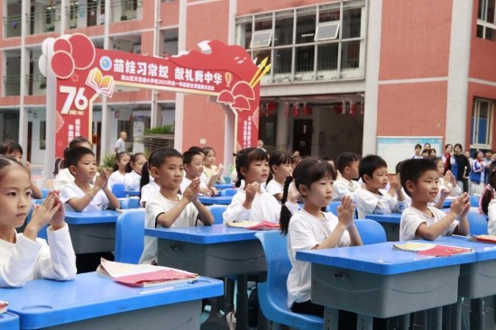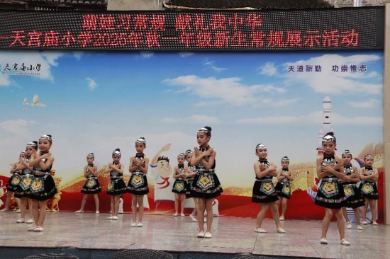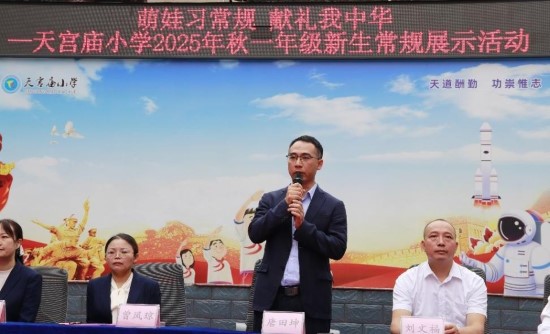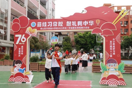 金秋送爽,丹桂飘香。在中华人民共和国76周年华诞来临之际,为检验一年级新生入学一个月来的行为规范养成成果,展示萌娃们积极向上的精神风貌,同时为祖国母亲献上我们最好的生日礼物。9月29日上午,天宫庙小学举行了"萌娃习常规,献礼我中华"一年级新生常规展示活动。