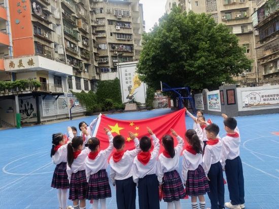 “我和国旗合个影”活动中,国旗在校园、公园、社区、名胜古迹,用镜头定格与祖国大好河山的同框瞬间,每一张笑脸都饱含对祖国的祝福;“我为祖国添光彩”志愿服务里,同学们化身“环保小卫士”清理社区垃圾,用实际行动践行社会责任;