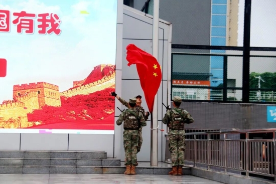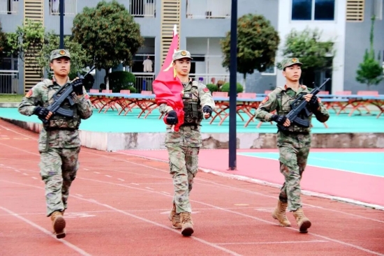 晨光破晓,步伐铿锵,一场万众瞩目的升旗仪式为国防教育活动写下庄严序章。学校特邀船山区人民武装部的官兵进行升旗仪式。他们军姿挺拔,正步生风,在全体师生肃穆的注视中,将五星红旗冉冉升起。伴随着雄壮的国歌与“浩洋勇渡,逐梦远航”的激昂校训,爱国强军的种子深植于每位学子心田。