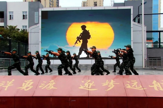 舞台之上,刚柔并济,一系列主题鲜明的节目汇成一曲荡气回肠的青春赞歌。从杀气震天的《铸魂》刺杀操,到深情回溯的《青春中国》情景剧;从实战感十足的战术演示,到意境深远的舞蹈《如愿》,演员们以饱满的激情与精湛的演绎,生动诠释了纪律、信念、传承与梦想,令现场观众心潮澎湃,掌声雷动。