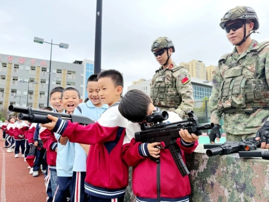 将课堂移至火热练兵场,户外参观体验环节让国防教育“活”了起来。同学们不仅近距离观摩各类武器装备模型,更有幸在民兵叔叔“手把手”的教导下,亲身学习枪械握持与击发要领。这一难得的互动体验,极大地激发了同学们的参与热情,也在他们心中埋下了崇军尚武、献身国防的宝贵种子。