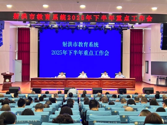 ▶9月26日,射洪市教育系统2025年下半年重点工作会在射洪四小知行讲堂顺利举行。市委教育工委书记,市教育局党组书记、局长王艳出席会议并就下半年校园安全、师德师风、周末托管、心理健康等重点工作进行安排部署。