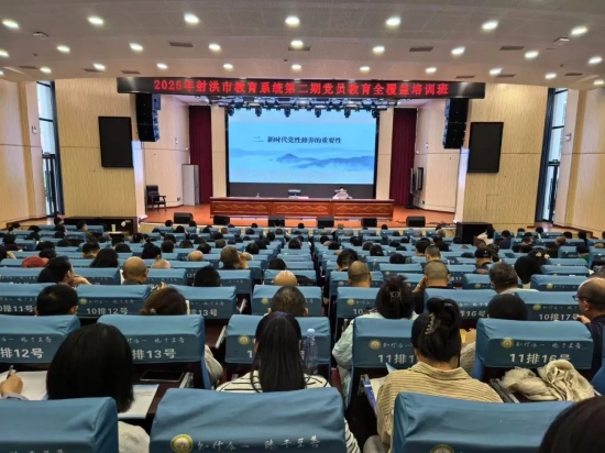 ▶9月22日,市教育局在射洪四小知行讲堂举行2025年教育系统第二期党员教育全覆盖培训班。