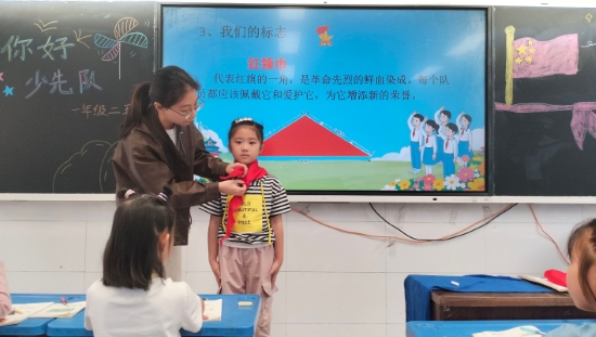 校园里,学习氛围浓厚而热烈。同学们在老师的悉心指导下,认真学唱《中国少年先锋队队歌》,嘹亮的歌声传递出对少先队的无限向往;他们反复练习敬标准队礼,高举的右手代表着“人民的利益高于一切”的崇高敬意;他们亲手学习佩戴鲜艳的红领巾,感受这革命先烈用鲜血染成的红旗一角的份量。此外,庄严的入队誓词和铿锵有力的呼号练习,更是让同学们提前体验了入队仪式的庄严与激动,将“准备着,为共产主义事业而奋斗”的誓言深深烙印在心中。