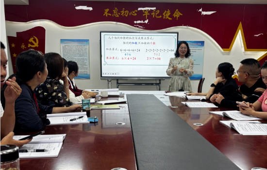 为落实“五育并举”教育方针,推动教师教学实践与先进理念深度衔接,10月15日下午,我校数学组全体教师齐聚党建室,开展以“深耕学科教学 赋能全面育人”为主题的校本教研活动。六年级杨金花、二年级刘玲、三年级杨小菊三位老师作为中心发言人,分享学习心得与教材解读,为全体数学教师带来一场干货满满的教学思考盛宴。
