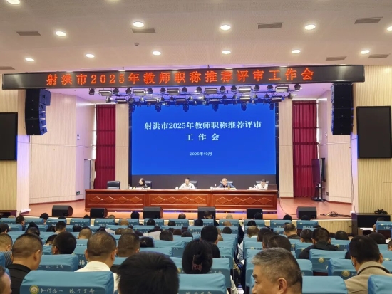 ▶10月13日,市教育局召开射洪市2025年教师职称推荐评审工作会。