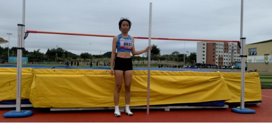 女子跳高比赛中:唐静雯获得第一名,并打破市运会记录(左3)