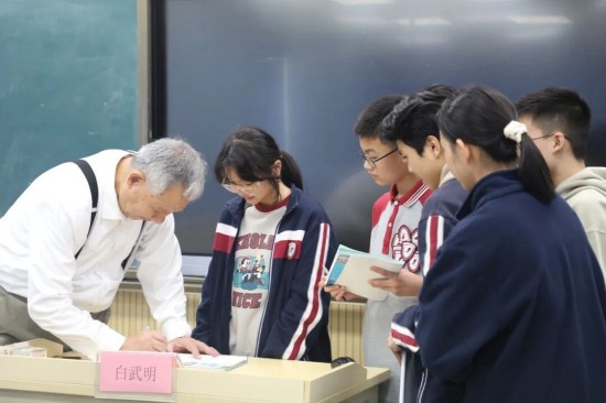 讲座结束后,意犹未尽的同学们更是自发排起长队,怀着对科学家的崇敬之情,请白教授签名留念,场面温馨而感人。