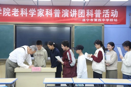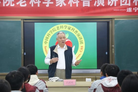 为深入贯彻国家科普教育精神,全面落实成渝地区双城经济圈建设战略,助力加快建设成渝中部现代化建设示范市,在四川省关工委、省关心下一代基金会的倾力推荐下,由遂宁市关工委、市关心下一代基金会特邀的中国科学院老科学家科普演讲团莅临我市,开展了为期数日的“弘扬科学精神”科普宣讲进校园活动。其中,遂宁市第四中学校作为重要一站,迎来了备受尊敬的白武明教授,他为师生们带来了一场题为《科学就在我们身边》的精彩科普讲座。