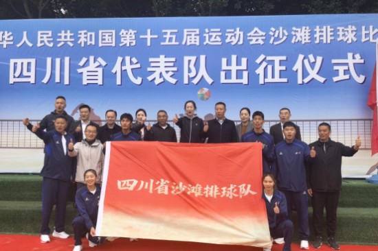 ▶10月27日,四川省沙滩排球代表队参加中华人民共和国第十五届运动会沙滩排球出征仪式在射洪中学举行。
