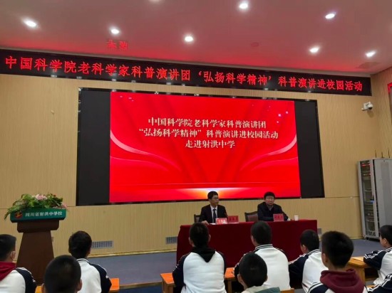 ▶近日,中国科学院老科学家科普演讲团“弘扬科学精神”科普演讲活动走进射洪各中小学校。