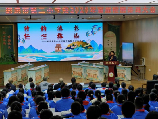 ▶10月30日,射洪二小举行“诗韵流长,仁心致远”首届校园诗词大会决赛。