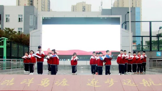 晨会伊始,五(1)中队的同学们带来了激情澎湃的朗诵节目 《体育颂》。他们用铿锵有力的声音,诠释了体育赋予生命的活力与担当。激昂的文字,诉说着运动场上的热血与拼搏,展现了洋渡学子昂扬向上、勇于争先的精神风貌。