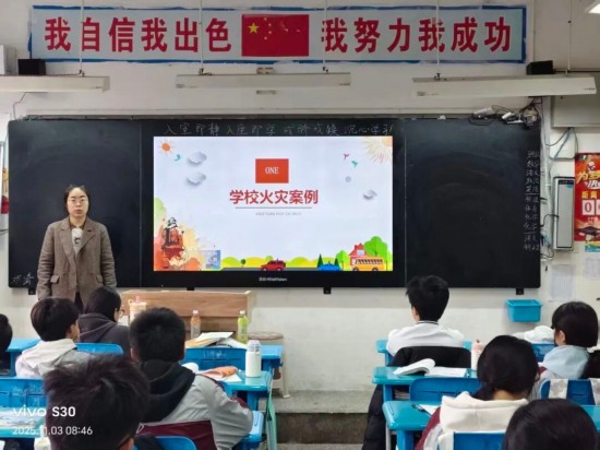 学校通过德育课堂开展消防安全主题班会,组织同学们学习消防安全知识,增长消防安全预防和自救自护技能。