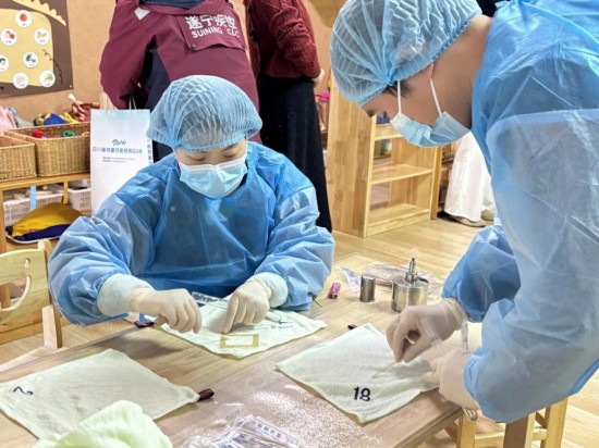 ▶11月7日,遂宁市疾控中心赴射洪二幼开展消毒效果专项监测。