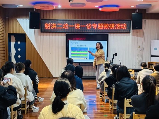 ▶11月3日,射洪二幼开展“一课一诊”园长专题音乐教研活动,助力教师提升艺术教学能力。