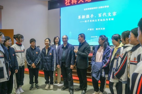 报告结束后,卢盛江教授特意与射洪中学伯玉文学社的学生代表进行了亲切交流。他耐心解答了同学们关于古典文学研习、诗歌创作等方面的问题,并鼓励大家以乡贤陈子昂为楷模,积极阅读经典、勤于思考、勇于动笔,将传统文化的精髓融入当下的学习与生活。文学社同学们表示,此次零距离对话大家学者,不仅拓宽了文学视野,更激发了对本土文化的深厚情感与传承责任。