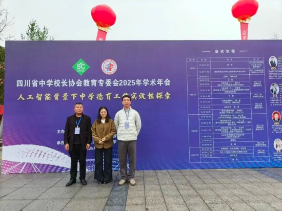 金秋送爽,丹桂飘香。2025年11月13日,我校教师代表满怀期待,赴内江二中参加四川省中学校长协会教育专委会2025年学术年会。本次年会以“人工智能背景下中学德育工作实效性探索”为主题,聚焦新时代德育工作的创新与实践,致力于推广优秀德育经验,学习先进德育做法,拓宽育人视野,提升育人能力。
