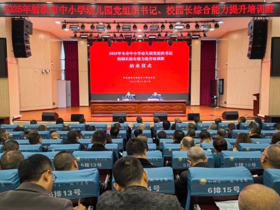 ▶11月5日--7日,2025年全市中小学幼儿园党组织书记、校园长综合能力提升培训班在射洪四小知行讲堂举行。市委教育工委书记,市教育局党组书记、局长王艳出席结业仪式并讲话。