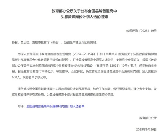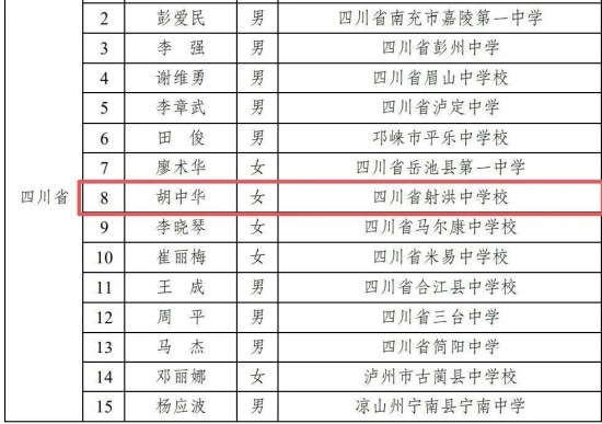 ▶近日,教育部公布首批600名全国县域普通高中头雁教师岗位计划入选教师名单,四川30位教师入选,其中射洪中学胡中华老师成功入选,是遂宁市唯一入选教师。