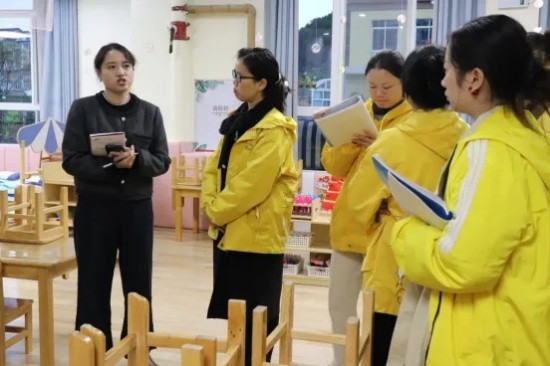 ▶11月10日,射洪八幼邀请学前教育专家到园开展区域游戏走班指导与实训。