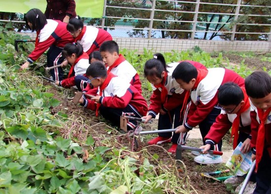 作为实践核心的“种子计划”将课堂搬到田间。学生们亲手采收红薯,并接力种下胡豆,从收获到播种的完整劳作,让孩子们深刻体会到“一粥一饭,当思来之不易”,真正理解了“饭碗田”的厚重意义。