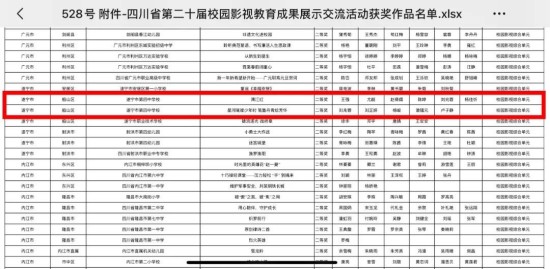 【喜报】热烈祝贺我校教师作品在四川省第二十届校园影视教育成果展示交流活动评选中喜获佳绩