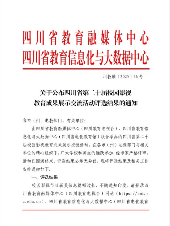 我校教师作品在四川省第二十届校园影视教育成果展示交流活动评选中喜获佳绩!