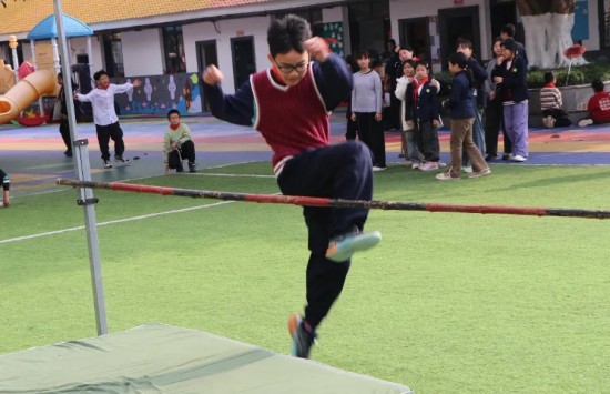 5-6年级的少年们在跳高赛场展开角逐,跨越式的身姿轻盈矫健。横杆一次次升高,挑战不断升级,他们助跑、起跳,用勇气跨越障碍。哪怕失败数次,也依旧重新站起,横杆之上的每一次飞跃,都是对极限的突破,对梦想的追逐。