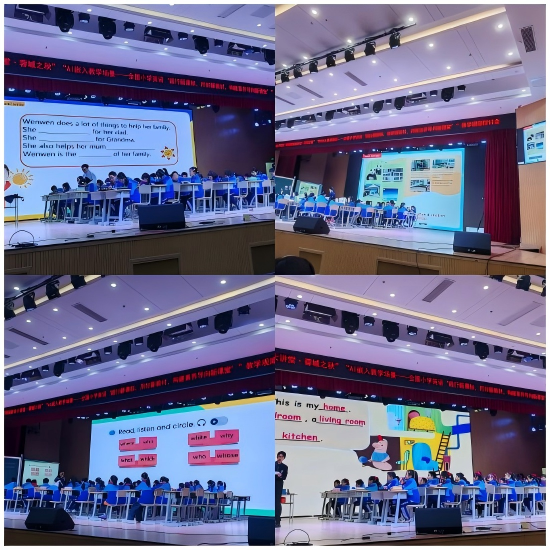 会议的观摩课环节更是精彩纷呈。来自全国各地的优秀小学英语教师代表,现场展示了多节融入AI元素的精彩示范课。张熙润老师的《U6 speed up An apple for two》、刘万友老师的《U2 Speed up The family’s sunshine》实现了新课标对主题意义的新要求,张永聪老师的《Unit5 Speed up:Pandas go to a new home》、王晓青老师的《Unit 5 We are family》、王超老师的《Unit6 Changing for the seasons Part A Let’s spell》这些课程巧妙运用了AI作业设计、语音测评、智能题库、情景对话生成等先进技术,将抽象的语言知识转化为生动有趣的互动体验。学生们在AI助手的引导下,积极参与听说读写各项活动,学习主动性和参与度得到显著提升。我校教师仔细观察每一个教学环节,认真记录教学亮点与创新点,并就课堂设计、技术应用细节等进行了热烈交流。