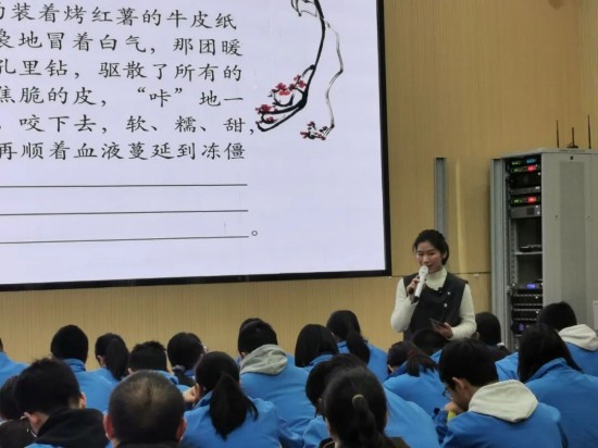 刘老师围绕“馄饨”设计“初读—细读—悟读”,勾连《白杨礼赞》重温托物言志,表格聚焦“小、淡、真、暖”打通“小日子”与“大格局”,学生在舒缓氛围中悟生活哲学。
