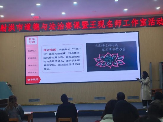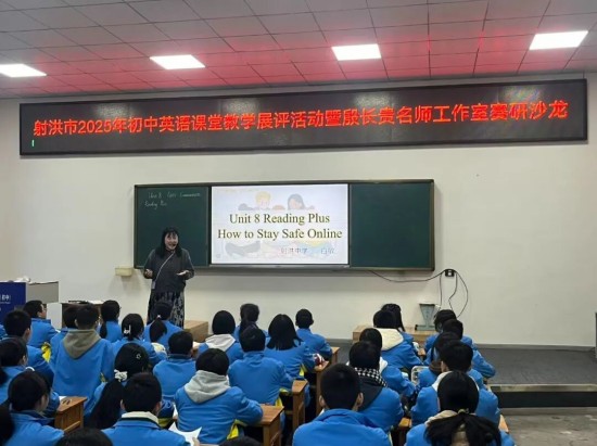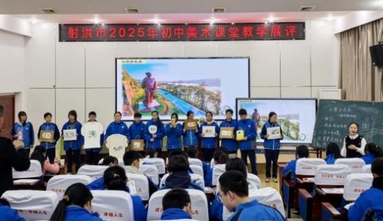 射洪中学初中部16名青年教师参加射洪市2025年初中课堂教学展评活动,最终9个学科获第一名,分别为语文、数学、英语、物理、生物、道德与法治、历史、地理、音乐,11个学科获得一等奖,其中语文、英语学科包揽前两名,数学学科获得第一名与第三名。