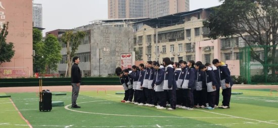 唐老师立定跳远教学口令响亮、示范到位,三级梯度练习由近及远,但重点环节时间被压缩,放松收尾仓促,赛课钟声的提醒让他看见成长刻度。