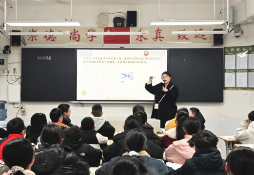 活动中,巴中二中李丽老师执教七年级上册《对顶角》一课。她立足新课标“三会”要求,采用“问题式”教学设计,以素养为导向、学生为主体、活动为主线。课堂从常见的剪刀实物切入,引导学生在观察、测量、猜想、验证与归纳中,亲身经历知识的建构过程,有效达成了教学目标,渗透了数学思想方法,生动诠释了课程育人理念。