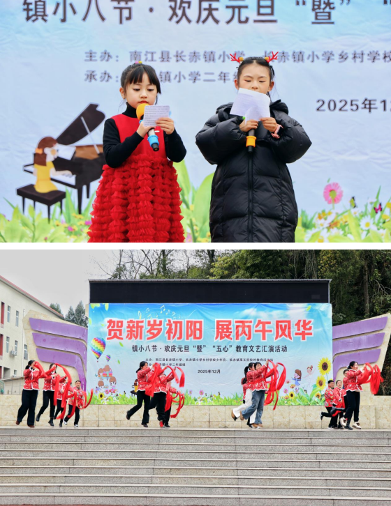 辞旧迎新启华章,童心欢歌贺新年。2025年12月28日,南江县长赤镇小学举行2026年元旦暨“五心”教育文艺汇演,全体师生欢聚一堂,以歌舞传情,以童心献礼,共同迎接丙午马年的到来。