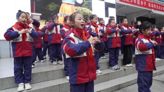随后,二年级1班的同学们带来了手语展演《小美满》。孩子们用整齐而柔软的手势,将歌词中对日常幸福的珍视与对未来的期盼,化作无声而动人的语言。他们用指尖的舞蹈告诉所有人:美好,就藏在每一个用心生活的当下。