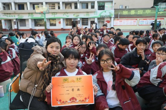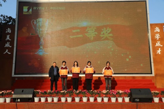 ▲党总支副书记、校长向春泽为获得二等奖的班级颁奖