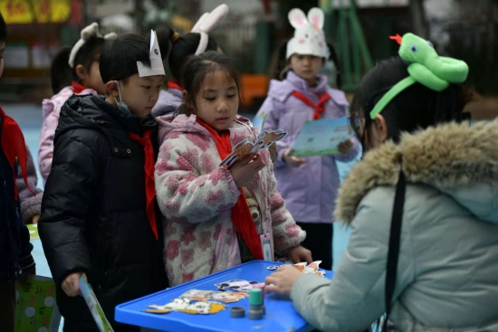 “开门大吉”关卡中,孩子们随机抽取生字卡片,稚嫩的声音清晰认读,一个个汉字变成词语在舌尖跳跃;“龙马文心”环节里,他们或声情并茂地背诵古诗童谣,以灵动的表情将文字转化为鲜活的画面,或用童真的语言展现出丰富的想象力与表达力,表达流畅且富有情感。