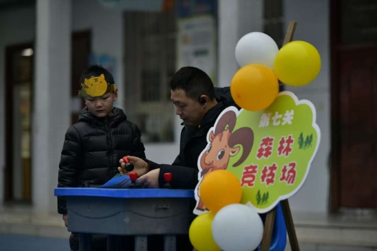“森林大舞台”上,孩子们唱响熟悉的歌曲,甜美的歌声伴着轻快的节奏回荡校园;“森林美术坊”中,他们用彩笔描绘美好世界,手工创作充满奇思妙想;“森林竞技场”内,跳绳、跳远等项目让孩子们活力四射,在运动中展现强健体魄与协作精神。每闯过一关,老师都会送上鼓励的话语,并在闯关卡上盖上可爱的印章,满满的成就感让孩子们笑容灿烂。