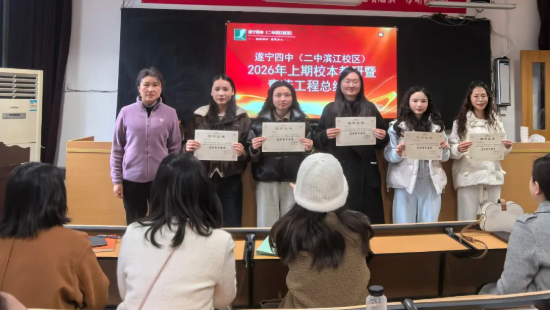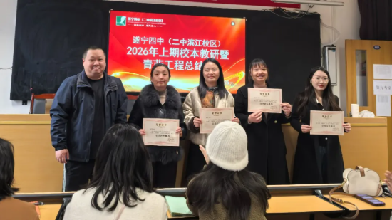 春归万物生,风暖启新程。为总结校本教研经验,深化“青蓝工程”传帮带作用,助力教师队伍高质量发展,2026年2月25日,遂宁四中(二中滨江校区)在学校会议室召开了2026年春季校本教研暨青蓝工程总结会。全体行政干部、教研组长、备课组长、35岁以下青年教师及2024-2025学年度指导教师参加了会议。