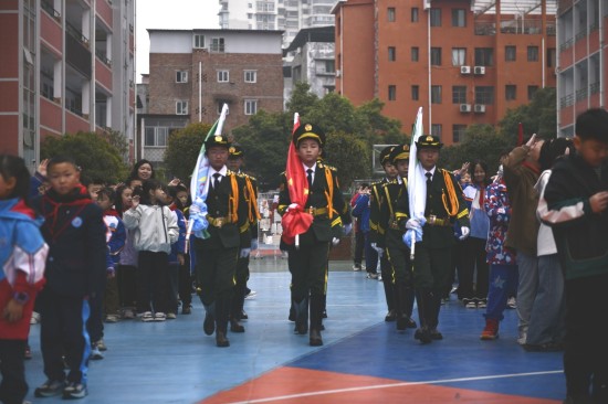 上午9时,典礼在庄严的升旗仪式中拉开帷幕。全体师生肃立,少先队员行队礼,五星红旗冉冉升起。随后,校中国舞社团带来精彩的《太平女儿鼓》表演,舞姿翩翩,展现了孩子们朝气蓬勃的精神风貌。