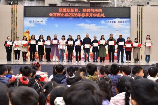春回大地,万象更新。2026年春季开学之际,船山区天宫庙小学以“骐骥跃新程,驰骋向未来”为主题,举行了一场充满温情与力量的开学典礼。全体师生齐聚校园,在庄严与欢笑中共同开启新学期的篇章。