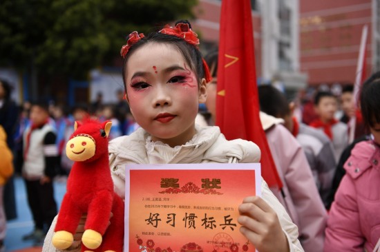 伴随着欢快的《快乐小马》乐曲,各班有序退场。新学期,新起点,船山区天宫庙小学全体师生将以更加昂扬的姿态,策马扬鞭,驰骋向未来。