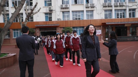 家长代表李敏女士上台为同学们加油鼓劲,深情的祝福与暖心的叮嘱,让同学们感受到亲情的支撑。家校同心携手,为复习冲刺凝聚起温暖而坚定的力量。