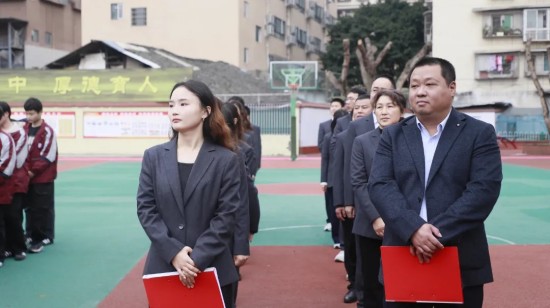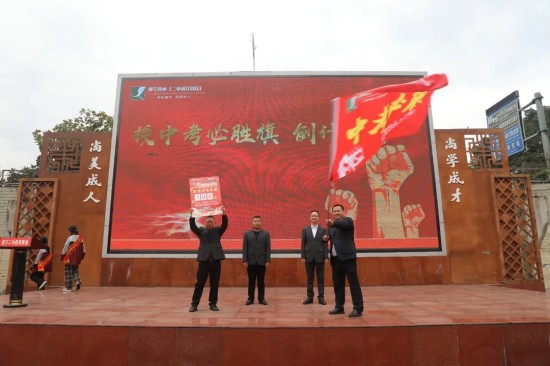 庄严的授旗授牌仪式将现场氛围推向高潮。学校党总支书记王强为初三年级授予中考必胜旗,校长向春泽授予中考倒计时牌;李攀华副校长、向松主任为各班分别授旗授牌。一面面旗帜、一块块牌匾,承载着学校的希望,点燃了全体师生奋勇争先的豪情。