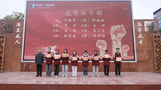 仪式对初三上期期末表现优异的同学进行表彰,优秀班干部、进步之星、学科之星、班级之星、年级之星依次上台领奖。学校领导为获奖同学颁奖,激励全体同学以榜样为标杆,奋起直追、争创佳绩。