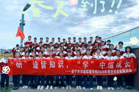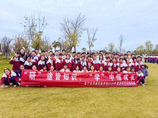 春和景明,万物复苏,正是走出校园、拥抱自然、研学成长的好时节。为培养学生集体意识,增强班级凝聚力,让孩子们在自然中感悟美好、在实践中收获成长,遂宁市洋渡实验学校于2026年3月18日组织全体师生开展了主题为“‘研’途皆知识,‘学’中悟成长”的春游研学实践活动。