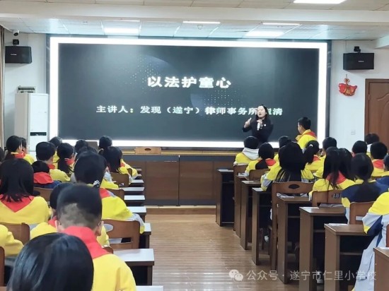 为增强六年级学生法治意识,提升自我保护能力,我校特邀发现(遂宁)律师事务所崔清律师,开展“以法护童心”主题法治教育课。崔律师以生动易懂的语言,为即将步入初中的学子们送上实用的法律知识与安全防护指南。