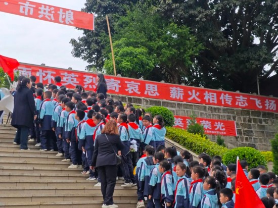 在学校党总支书记胥杰的引领和杨俊熙校长的工作部署下,射洪四小党员教师代表和少先队员代表来到东山公墓开展烈士陵园祭奠仪式。