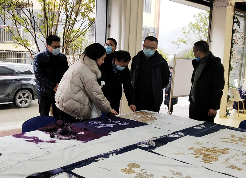 刘志勇一行先后调研了摩尼镇镇史馆、扎染馆,慰问驻村干部,并在金榜村党群服务中心召开座谈会。